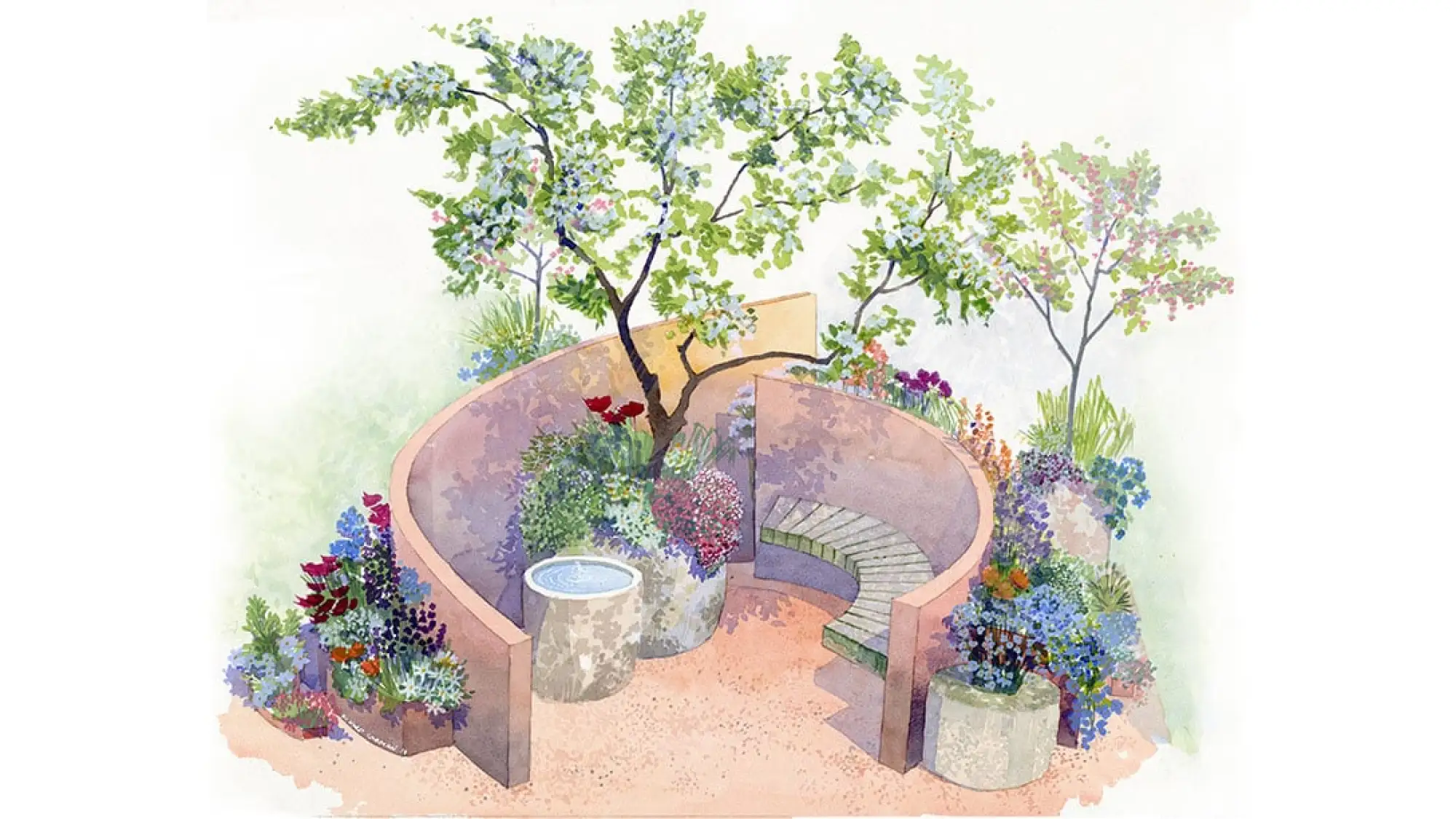 The imagined client is a female professional, who lives by herself in the city. The garden mixes her love of contemporary art, design and sculpture with magical memories of growing up on a cider farm, amongst the sprawling orchards, abundant hedgerows and wild flowers. Wellness is a big part of her life and she's fascinated by the gut microbiome and its numerous health connections, particularly since her family has been impacted by dementia. With dementia being all consuming, the garden offers her comfort, a cocooning sanctuary, a place to think, connect with nature and feed her own microbiome.