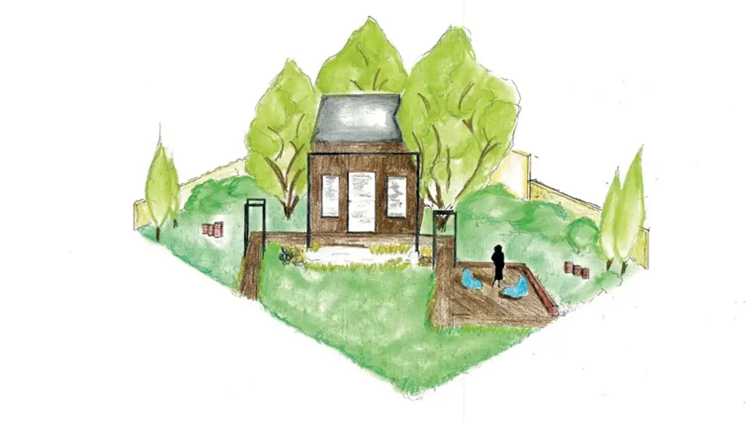 This garden aims to encourage more people to plant butterfly friendly plants and help with their survival. The garden features a garden room with decking outside. Decking is also used for the paths and a secondary seating area, which is made from thermo-ash (no chemicals are used in treating it). A stream runs from a down pipe into a pond, which is designed to overflow into a rain garden. This demonstrates how to use run off water to create a wildlife pond and irrigate the garden. A boundary wall is created using hemp blocks, which have a low carbon impact.