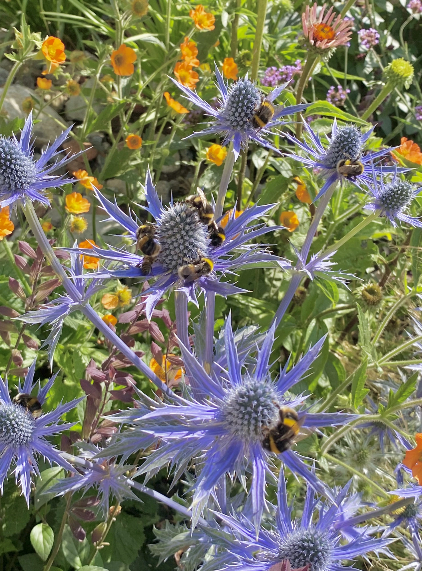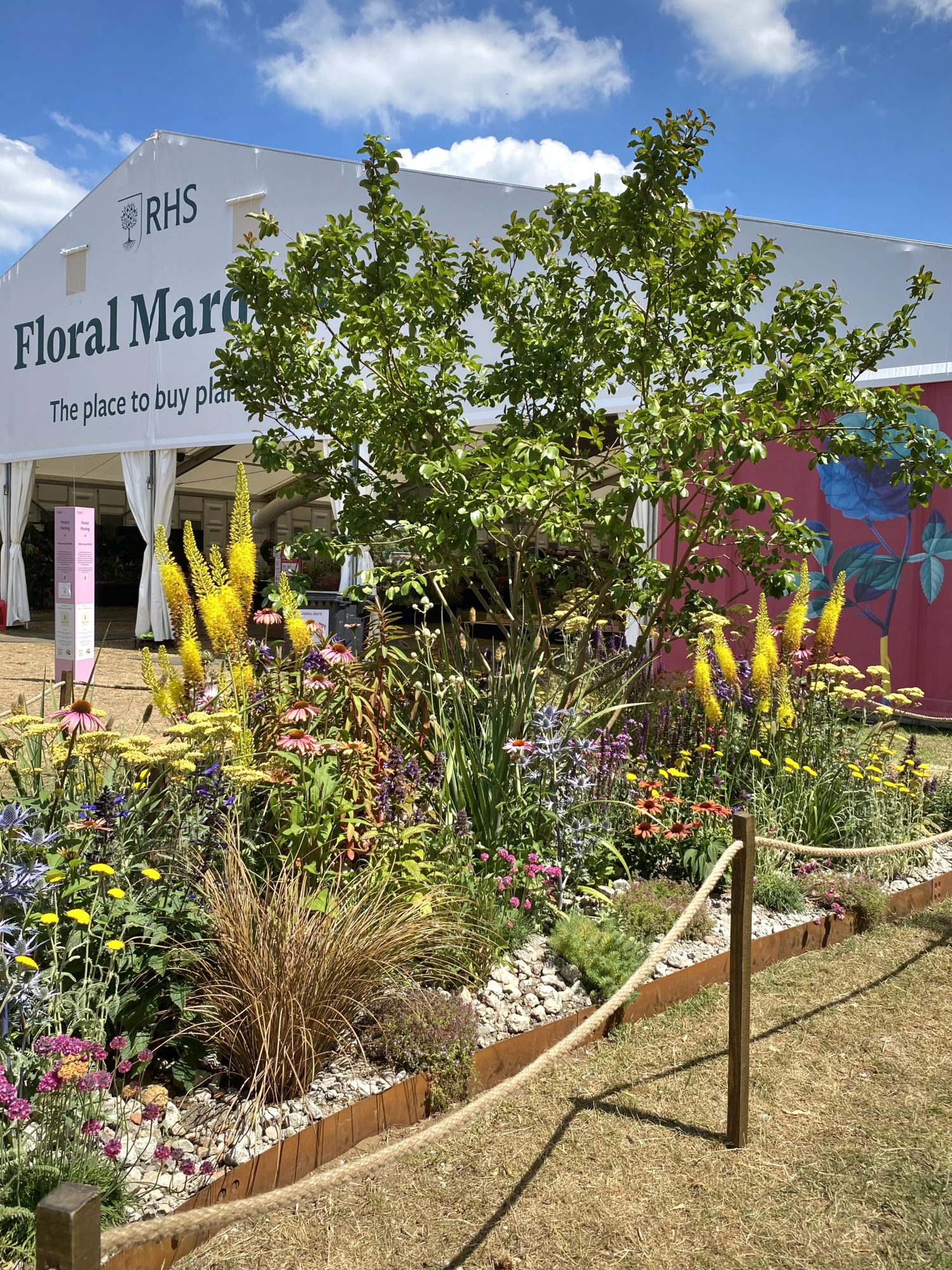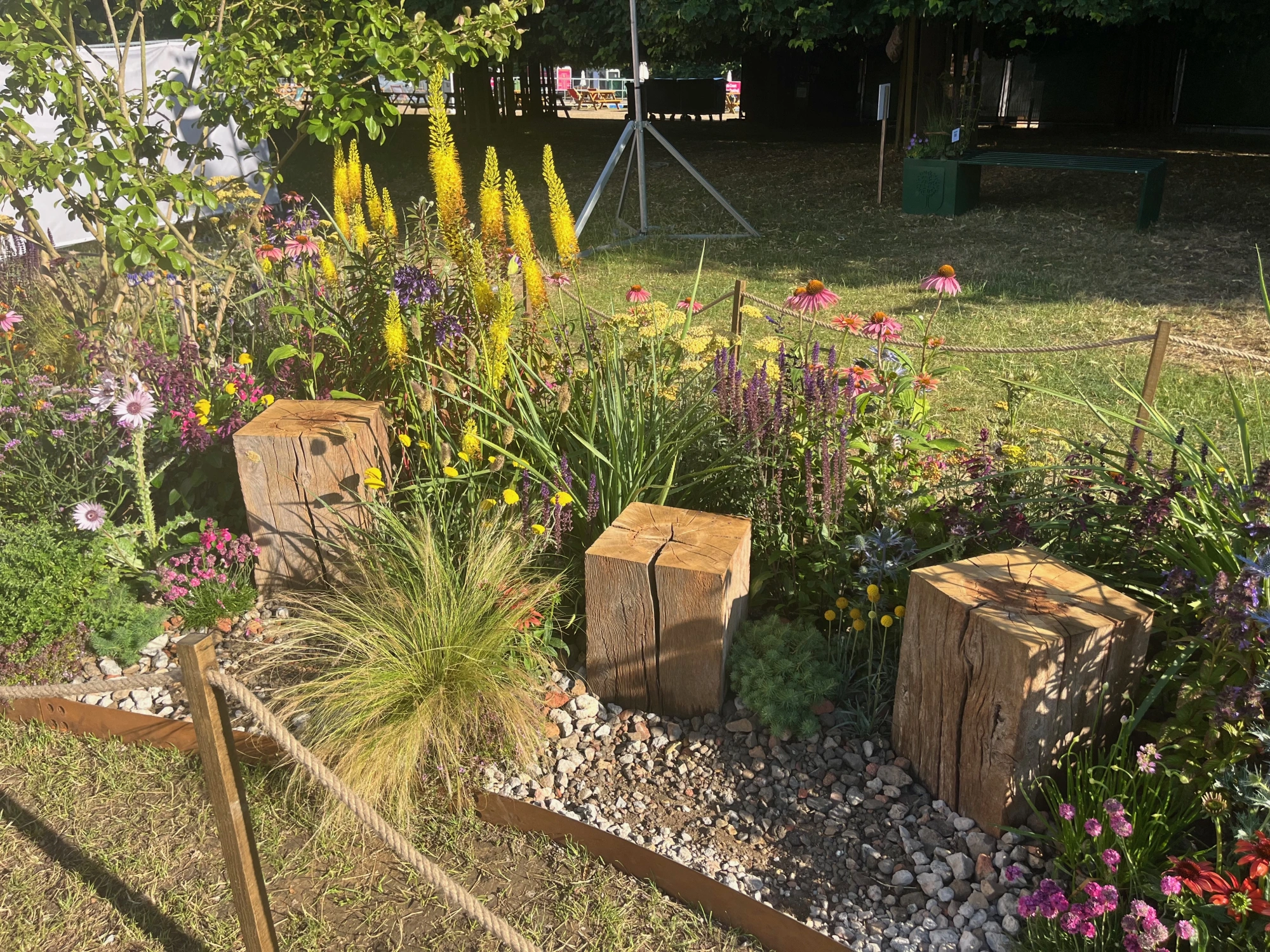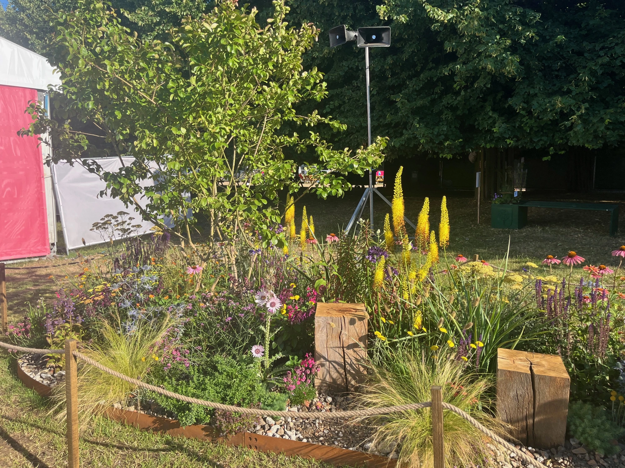 An eye-catching and colourful planting pocket, giving you time to pause, take a perch and reconnect with nature. The theme of the pocket focuses on drought tolerant plants that can thrive and survive in hot, dry and low fertile conditions and are good for pollinators. The pocket is inspired by dry meadow and gravel garden planting schemes that are resilient and can adapt to a warming climate.
