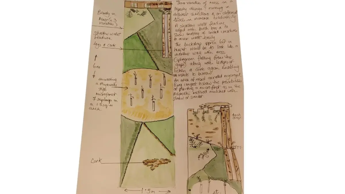 MOSS, with its many varieties can trap carbon absorption efficiently. It can provide an ecosystem for insects and pollinators, a source of water for bees, with so many varieties it will be the star of the show, the basis of the tapestry!