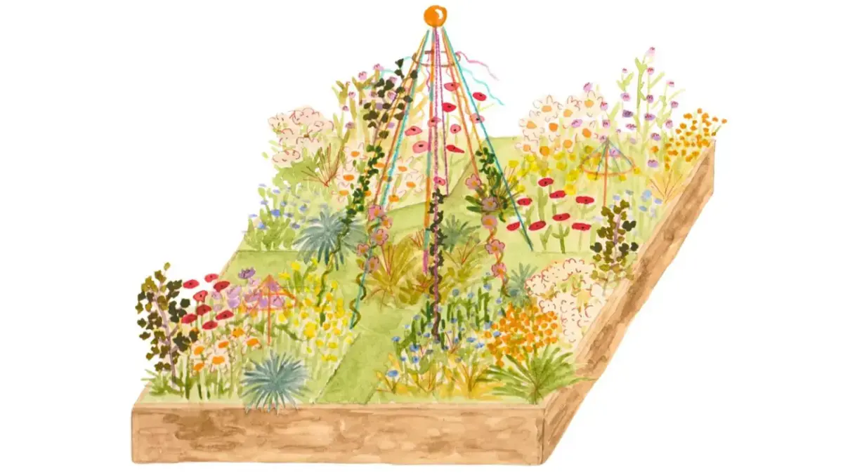 This border is inspired by the living tradition of Morris dancing, a joyful celebration of nature, community, and the turning of the seasons. I am part of a newly formed Morris side called Heaps Morris, and we have been dancing together since 2023.Being part of this group has been a transformative experience for me. This garden tells the story of how, through dancing, I have found a community seeking to reconnect with nature and the land. The design centres on May Day, the most important date in the Morris calendar, where dancers meet before dawn to celebrate the return of the sun. A central Maypole forms the heart of the garden and native climbers and meadow flowers dance around it. Through this garden, I hope to inspire conversation about folk traditions and their connection to the natural world