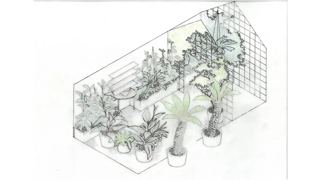 A multitude of climbing plants are used to decorate the restaurants in the glasshouses at Petersham. These bring colour, scent, shade and a sense of calm to the diner's experience. Within this Houseplant Studio the walls will be hung with jasmines and other flowering climbers. The narrative is one of escape from the outside world and the stresses therein. Entertaining, creativity, or mindful contemplation, each has its place within 'The Conservatory'.