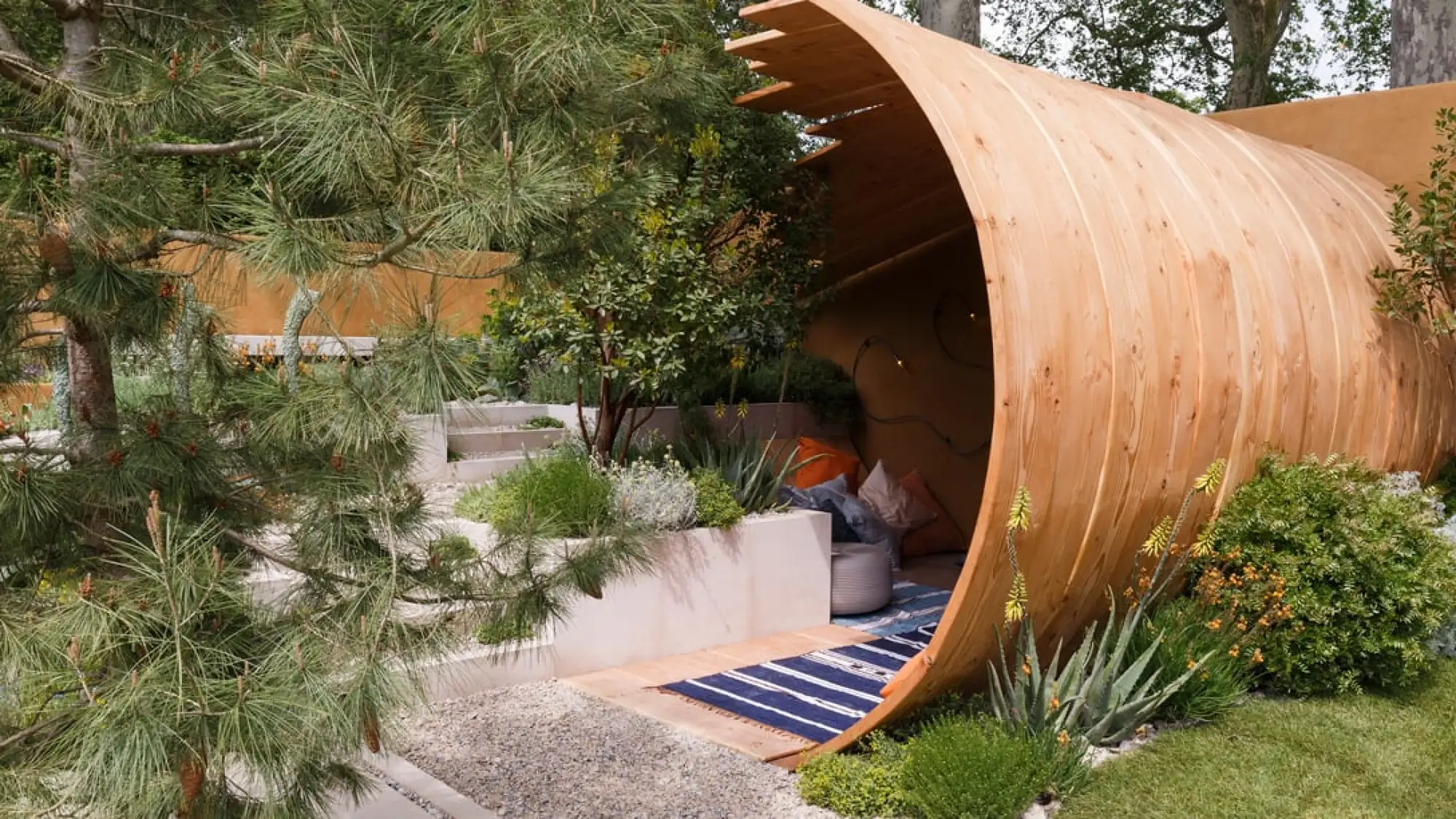 The Dubai Majlis Garden is inspired by the sculptural beauty found in arid landscapes, from wind-blown sand dunes and fluvially eroded rock to the manmade hillside terraces and the goat-browsed topiary-esque plants that colonise them. A sand-dune-inspired pavilion is the main destination and provides a calm and contemplative space for young people to meet.