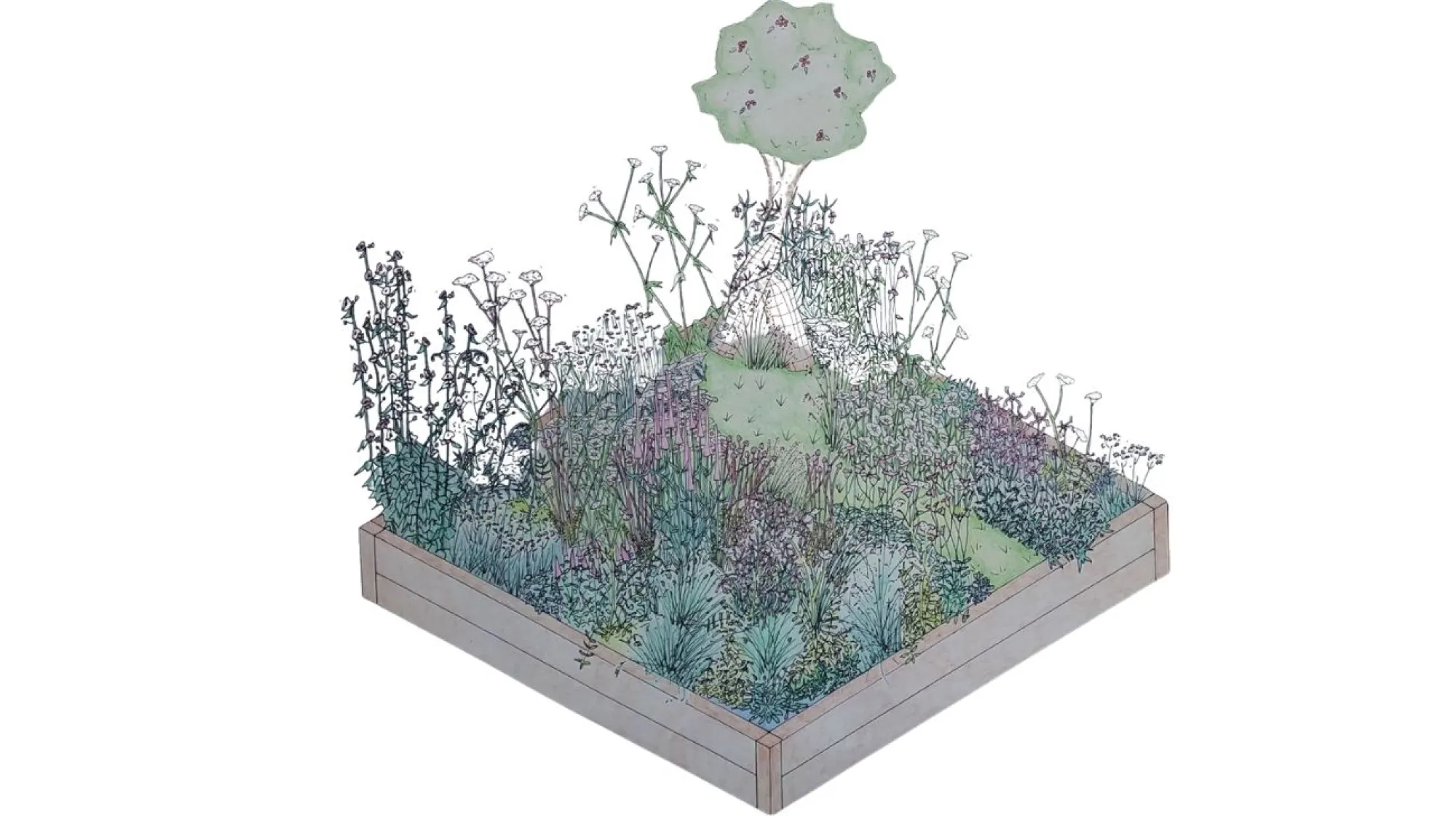 I'd like my design to question what a garden can be: a space on the margins between cultivation and wildness, yet vibrant and full of colour. It celebrates native resilient species that can endure extremes, sustain wildlife, and point towards the future of gardening grounded in beauty, ecology, and belonging.